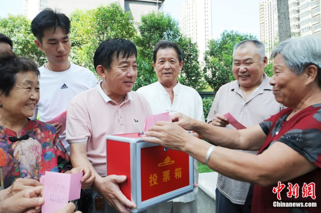 安徽省亳州市譙城區薛閣街道辦事處西關社區舉行第六屆居民委員會選舉大會,居民在流動投票點投票。張延林 攝