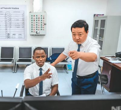 毛鑫是非洲之星鐵路運(yùn)營公司運(yùn)輸部內(nèi)羅畢車站運(yùn)轉(zhuǎn)主任,他與徒弟彼得·恩堅加一起制定調(diào)度計劃、調(diào)控列車運(yùn)轉(zhuǎn)。“我們無保留地把國內(nèi)的技術(shù)標(biāo)準(zhǔn)帶到肯尼亞,學(xué)員已達(dá)到國內(nèi)車站同等作業(yè)標(biāo)準(zhǔn)。”毛鑫說,幫助肯尼亞建設(shè)第一條現(xiàn)代化鐵路,是他人生中的亮點。彼得表示,自己從師父身上學(xué)到了許多專業(yè)技術(shù),未來他將把知識傳授給更多人。