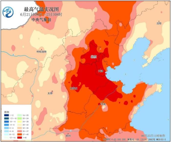 6月22-24日,北京南郊觀象臺連續三天氣溫超過40℃,北京城區高溫時長超過40小時,6月22日南郊觀象臺最高氣溫達41.1℃,雖然沒有破歷史極值41.9℃(1999年7月24日),但三天的最高氣溫均進入歷史高溫排行前十,綜合影響為歷年來最強。