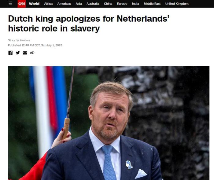 中新網7月2日電 綜合外媒報道,當地時間7月1日,荷蘭國王威廉-亞歷山大就荷蘭歷史上的殖民歷史和參與奴隸貿易,及其至今造成的影響正式道歉,并稱這是“反人類罪行”。