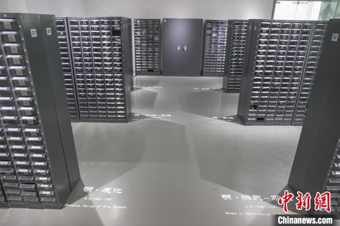 在基因庫內(nèi),被收集的古瓷片被制成標本形態(tài)放入小盒中,按照年代劃分存入柜中。中新社記者 劉力鑫 攝