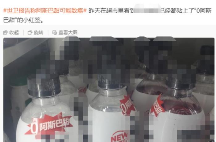 還有網友稱,在超市里看到有飲料已貼上“0阿斯巴甜”的標簽。相關飲料品牌方回應中新財經稱,標簽可能是經銷商自行貼上,品牌方本身未對瓶身包裝做出改動。