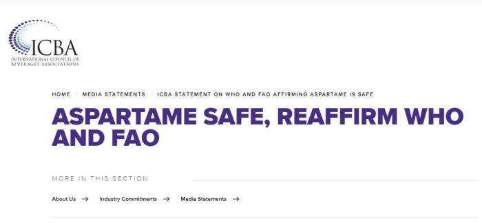 同一天,國際飲料協會委員會(ICBA)發布文章稱,目前含阿斯巴甜的食品和飲料是安全的。ICBA還強調,IARC不是食品安全機構,它現在正式承認,阿斯巴甜造成的危害并不比蘆薈和其他數百種物質的危害大,這些物質根據IARC描述都屬于證據“有限”和“不完全充分”的分類。