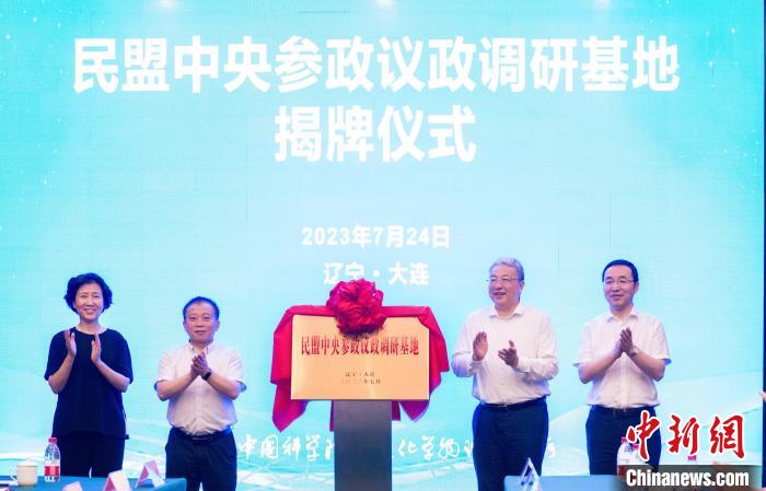中新網大連7月24日電 (記者 楊毅)民盟中央參政議政(遼寧大連)調研基地揭牌儀式24日在中國科學院大連化學物理研究所(以下簡稱“大連化物所”)舉行。