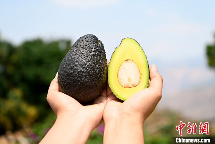 圖為4月27日,云南八方農業科技發展有限公司工作人員展示成熟的牛油果。 中新社記者 李嘉嫻 攝