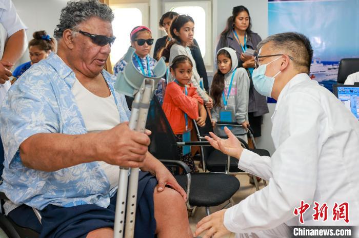 在內科診室,一個9歲的湯加小女孩因為面癱找到神經內科醫生張海玲,張醫生耐心給出康復治療方法;在口腔科,華人張大爺被口腔牙齒殘片困擾十多年,醫生陳辰及時拔除了病牙;在風濕免疫科,懷疑自己尿酸偏高的華僑吳蘇平找到吳歆醫生,得到了個性化診療方案……