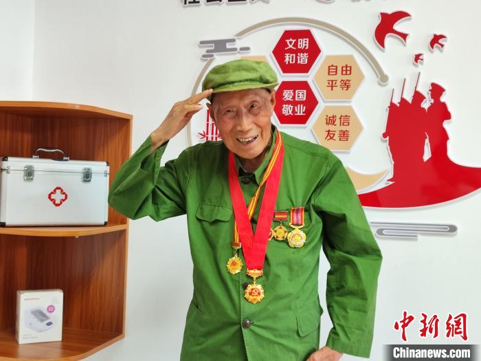 中新網(wǎng)贛州8月1日電 (熊錦陽)整理好軍裝,佩戴上勛章,8月1日清晨,老兵王益民就已洗漱完畢,對(duì)他而言,今天是一個(gè)重要的日子。早上6點(diǎn)15分,通過直播,王益民聚精會(huì)神地觀看著南昌八一廣場上舉行的升旗儀式,隨著五星紅旗緩緩升起,這位93歲的抗美援朝老兵迅速立正抬手,向著鮮艷的國旗做了一個(gè)標(biāo)準(zhǔn)的軍禮……