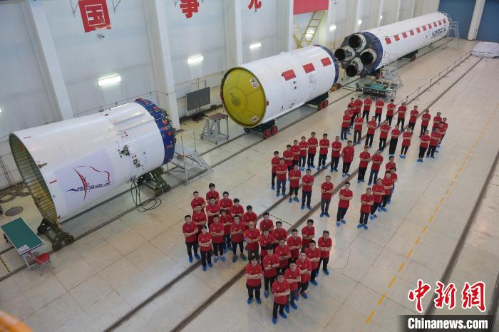 8月1日,長征四號丙運載火箭研制團隊站成數字“100”的隊形。(中國航天科技集團有限公司八院 供圖)