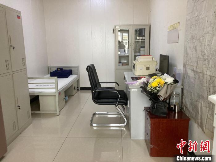 2023年8月,馮振在西小營小型站工作和生活的站長室,墻上貼著馮振和隊員一起繪制的地圖。 中新社記者 徐婧 攝