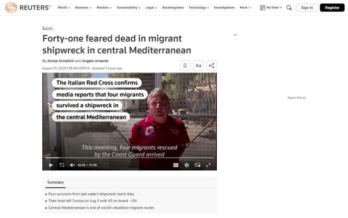 路透社報道稱,地中海中部是世界上最危險的移民路線之一。據國際移民組織稱,自2014年以來,已有超過22000人在該海域死亡或失蹤。