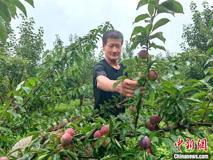立秋時節,在付澤民的果園里,即將成熟的果子壓彎了枝頭。天氣終于放晴,他帶著鐵鍬和兒子一起巡山,遇到仍有排水不暢的水渠,兩人一起動手疏通,并觀察掛果的狀態。
