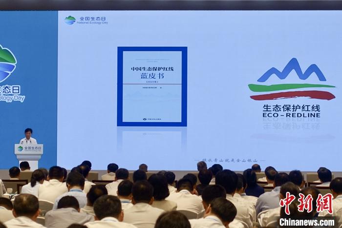 8月15日,首個全國生態(tài)日主場活動在浙江湖州舉行,中國國家發(fā)改委、中國自然資源部等部門發(fā)布碳達峰碳中和重大宣示三周年重要成果、《中國生態(tài)保護紅線藍皮書(2023年)》等多方面的成果成效。圖為《中國生態(tài)保護紅線藍皮書(2023年)》發(fā)布。 中新社記者 錢晨菲 攝