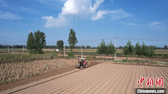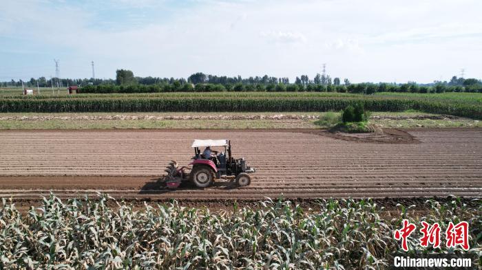 8月14日,河北省涿州市刁窩鎮小豹子莊村,村民李景山家的耕地開始復耕。(無人機照片)中新社記者 翟羽佳 攝
