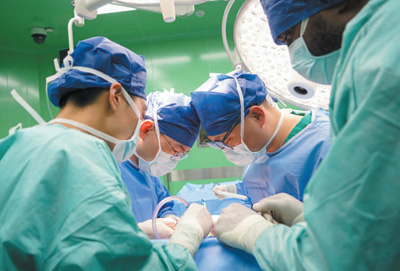 8月10日,醫生在中國海軍“和平方舟”號醫院船上,為瓦努阿圖患者進行手術。