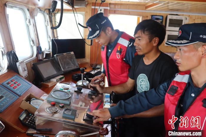 海警執法員對漁船導航儀器設備進行檢查。蔡曉曄 攝