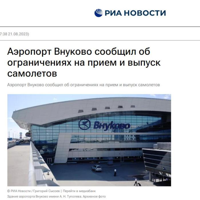 中新網8月21日電 據俄新社報道,當地時間21日,俄羅斯首都莫斯科的伏努科沃機場表示,出于機場無法控制的原因,暫時限制航班在該機場起降。