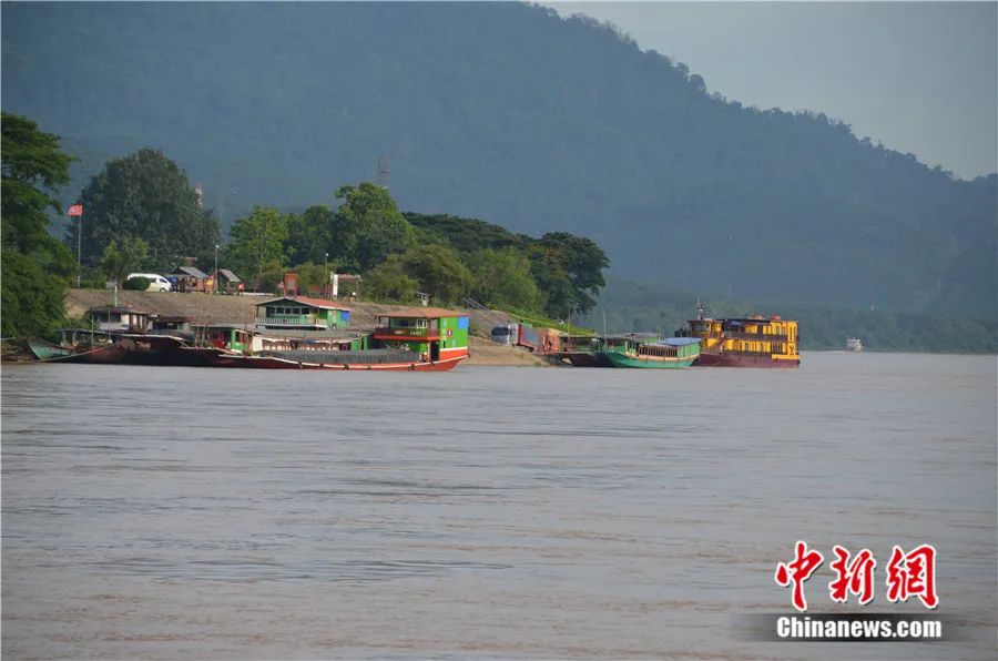 停泊在瀾滄江-湄公河岸邊的各國商船。繆超 攝