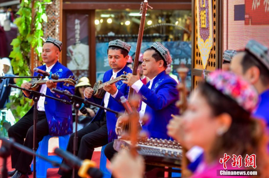 新疆藝術劇院木卡姆藝術團樂隊奉上樂器聯奏《多彩新疆》。劉新 攝