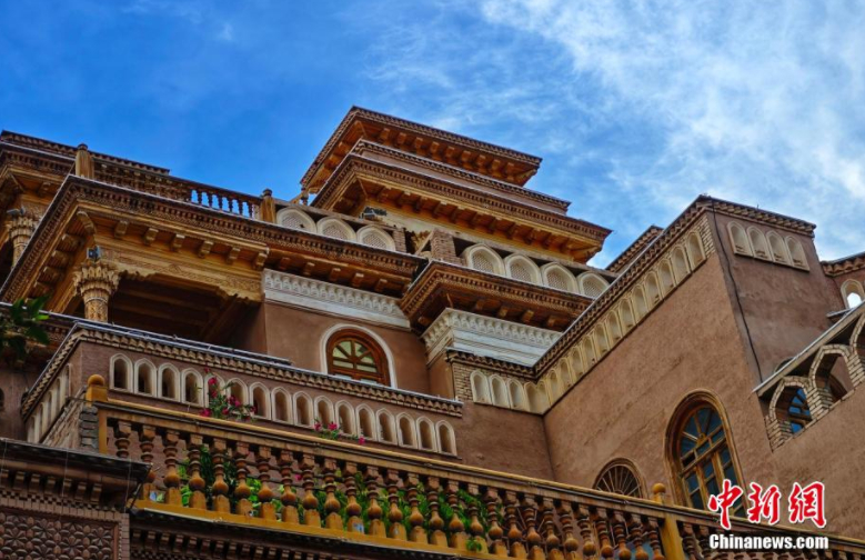 新疆國際大巴扎景區,游客在地方特色建筑前參觀游覽。劉新 攝