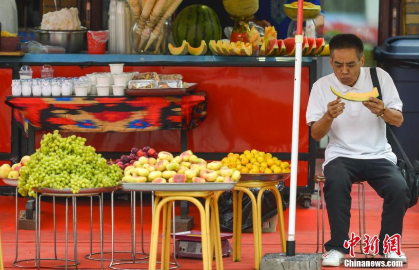 盛夏時節,新疆又迎來一年瓜果飄香時,游客隨時隨地都可品嘗到最美味的瓜果。劉新 攝