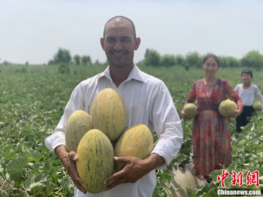 伽師縣果農采摘甜瓜。伽師縣委宣傳部供圖