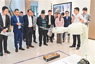 在自動檢測產品外觀缺陷的視覺質檢機器人前,使節們停下腳步,饒有興致地觀看。火龍說:“在數字經濟推動下,人工智能等技術與傳統工業深度結合,讓人耳目一新。”