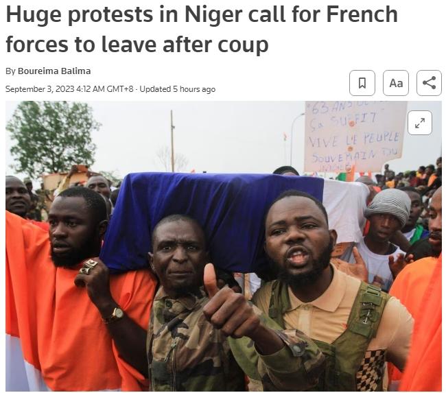 一名示威者稱,“我們今天準(zhǔn)備犧牲自己……法國(guó)掠奪了尼日爾的資源,尼日爾人現(xiàn)也已覺醒,所以要將法國(guó)人趕出去。”