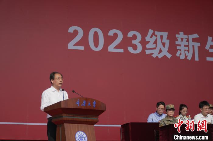 中新網重慶9月3日電 (記者 鐘旖)重慶大學2023級本科生開學典禮暨軍訓動員大會3日在校內舉行。重慶大學校長、中國工程院院士王樹新為來自五湖四海的新生帶來“開學第一課”。