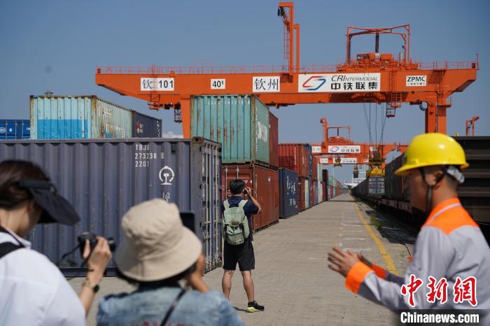9月5日,兩岸媒體人走進位于廣西欽州的欽州鐵路集裝箱中心站。 中新社記者 張楊彬 攝