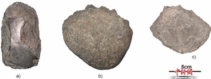 云南滄源得丹洞遺址發現的和平文化石器工具。吳沄供圖