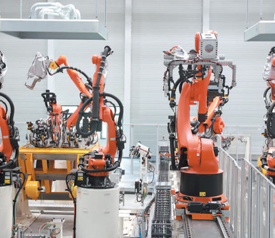 大眾安徽新能源汽車(chē)工廠車(chē)身車(chē)間。