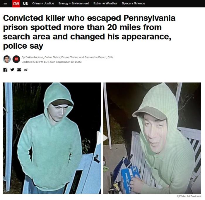 據賓州警方介紹,卡瓦爾坎特在逃跑中還曾聯系2位前同事,要求與其見面。截至當地時間10日下午,警方尚不確定卡瓦爾坎特是否攜帶武器,但警方能夠確認他自越獄后曾進入幾棟住宅。尚不清楚他是否從這些地方拿走東西。