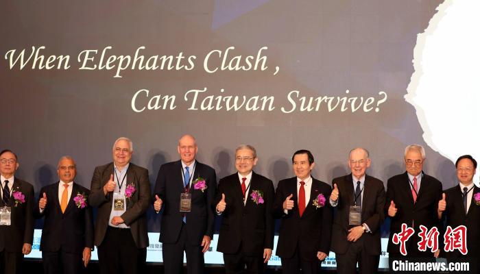 9月11日,臺灣地區前領導人馬英九(右四)在臺北出席“2023地緣政治高峰論壇”時指出,鼓勵兩岸對話謀和才是對各方最有利的和平政策。 中新社記者 劉舒凌 攝