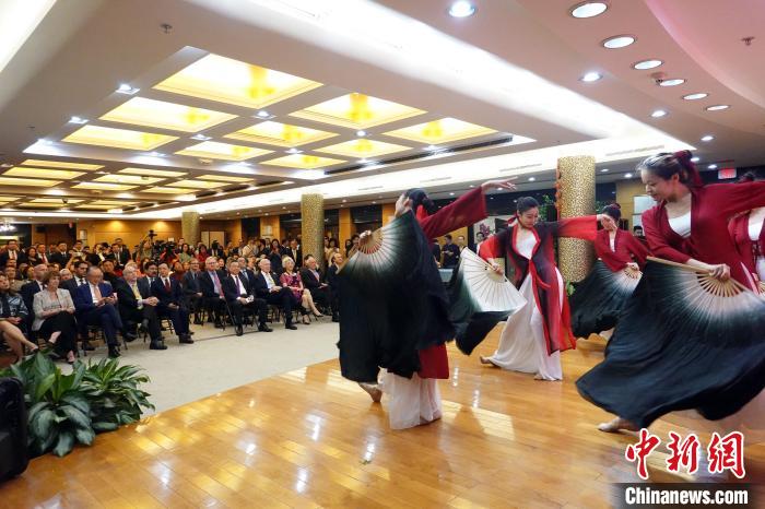 當地時間9月13日,中國駐紐約總領館在紐約舉行慶祝中華人民共和國成立74周年招待會,領區政商學媒等各界代表近400人出席。圖為觀眾觀看古典舞蹈《書簡舞》。 中新社記者 王帆 攝