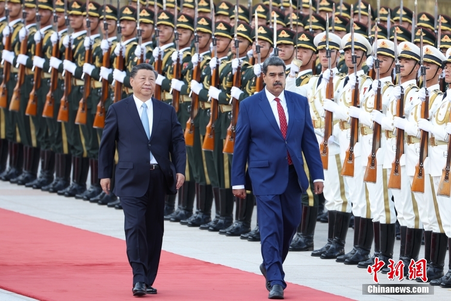 9月13日下午,中國國家主席習近平在北京人民大會堂同來華進行國事訪問的委內瑞拉總統馬杜羅舉行會談。會談前,習近平在人民大會堂東門外廣場為馬杜羅舉行歡迎儀式。中新社記者 盛佳鵬 攝