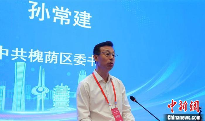 圖為槐蔭區委書記孫常建在開幕式濟南會場上發表致辭。濟南市槐蔭區 供圖