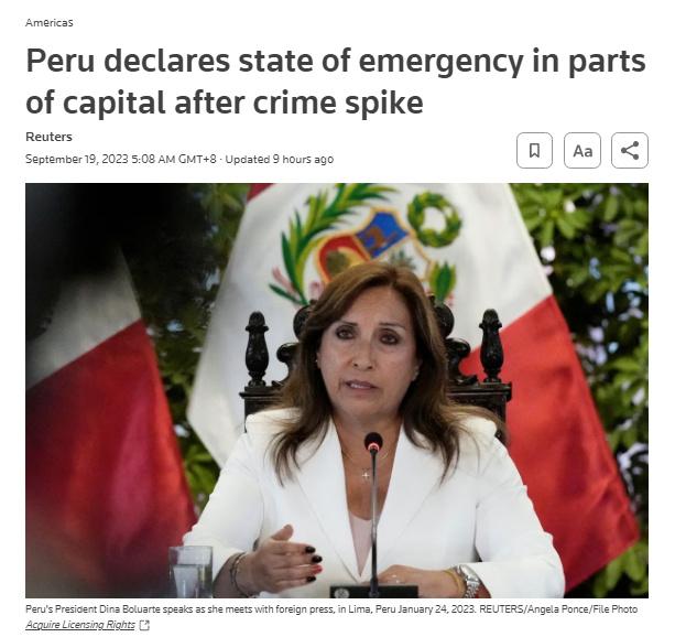 目前,秘魯地方當局呼吁政府派出武裝部隊,協助警方打擊犯罪。