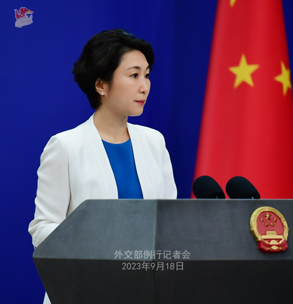中新網北京9月18日電 (謝雁冰)中國外交部發言人毛寧9月18日主持例行記者會。
