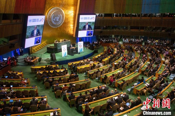 中新社聯合國9月18日電 (記者 王帆 劉關關)作為第78屆聯合國大會高級別周的核心活動之一,聯合國可持續發展目標峰會18日在紐約聯合國總部拉開帷幕。當天,聯大通過一項政治宣言,會員國承諾加速實現2030年可持續發展目標。