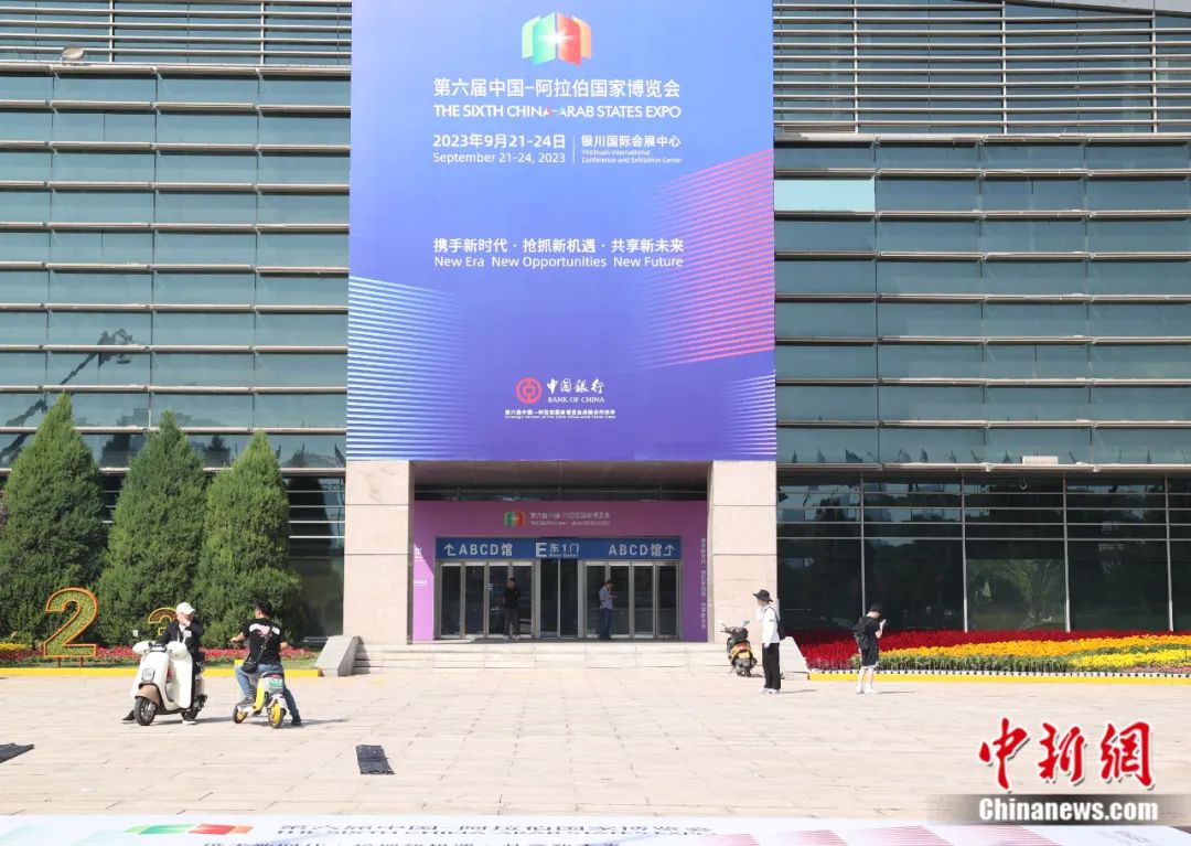 2023年9月16日,銀川國(guó)際會(huì)展中心裝扮一新,迎接即將開幕的第六屆中國(guó)—阿拉伯國(guó)家博覽會(huì)。于晶 攝
