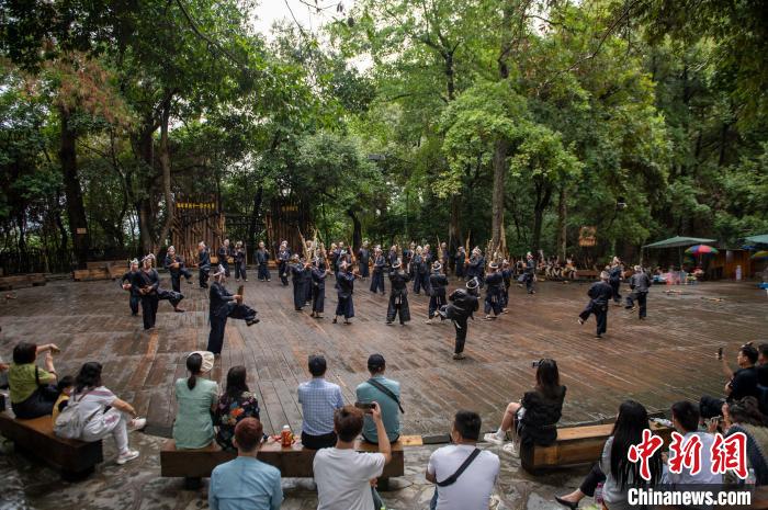 資料圖:游客在貴州省從江縣丙妹鎮岜沙苗寨觀看民族舞蹈表演。吳德軍 攝
