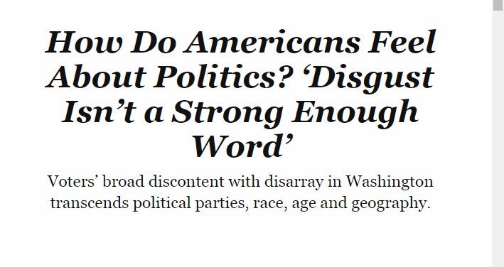 皮尤研究中心在七月份進行的一項調查發現,美國人對政治領導人不滿意,這種不滿跨越了種族、年齡和黨派的界限。65%的受訪者表示,他們一想到政治就感到疲倦。