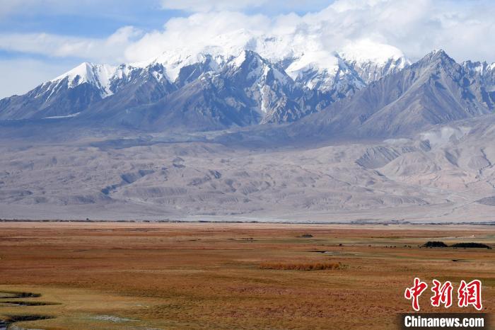 圖為10月2日拍攝的新疆喀什地區塔什庫爾干縣塔合曼濕地和慕士塔格雪峰。中新網記者 孫亭文 攝