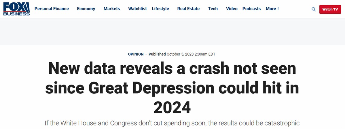 報道中寫道,越來越多的數據表明,一場破壞性超過大蕭條的經濟崩盤可能即將在2024年降臨美國。白宮和國會如果不盡快削減政府支出,結果可能是災難性的。