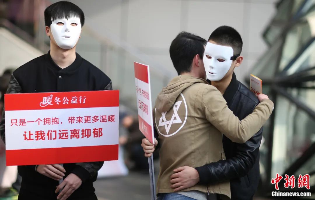 2016年1月3日,主題為“給抑郁癥患者一個擁抱”的暖冬公益行活動在南京新街口正洪街廣場上舉行。泱波 攝