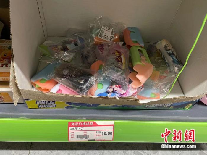 一些地區的市場監管局也針對“三無”蘿卜刀開始采取行動。比如,重慶市璧山區市場監管局對“蘿卜刀”等兒童用品開展專項整治行動。檢查發現有的1戶商家在宣傳“蘿卜刀”時使用“殺掉你”、“擦擦擦鯊掉”等誘導不當行為的文字,已現場責令商戶整改。