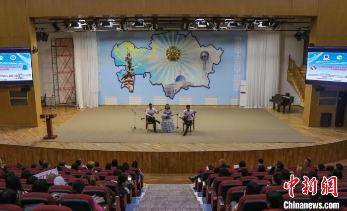 此外,還有學生以唱歌形式解讀阿拜詩歌中傳達出的哲學思考,更有選手將表演與詩歌朗誦進行有機結合,巧妙展現了阿拜詩歌所蘊含的深刻內涵。不僅如此,賽間還有大學藝術團不間斷的表演助興,冬不拉彈唱、中文歌曲演唱、小提琴、哈薩克舞蹈等節目,令現場氣氛熱烈,掌聲不斷。