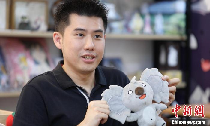 6月15日,創業臺青吳偉誠展示公司設計的動漫IP衍生品。中新社記者 張亨偉 攝