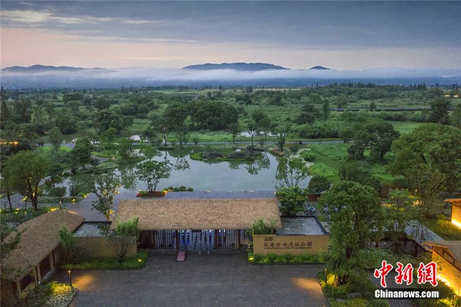 良渚古城遺址公園(無人機照片)。中新社發 杭州良渚遺址管理區管理委員會 供圖