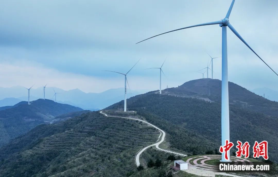 臺州市仙居縣廣度鄉風力發電機。(無人機照片)陳月明 攝